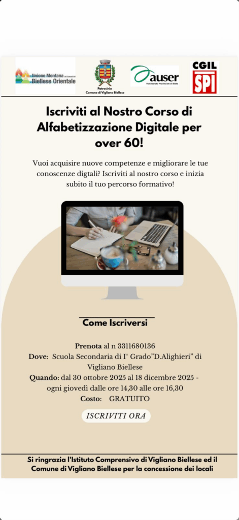Iscriviti al corso di alfabetizzazione digitale per acquisire nuove competenze e migliorare le tue conoscenze digitali. Corso gratuito dal 30 ottobre al 18 dicembre.
